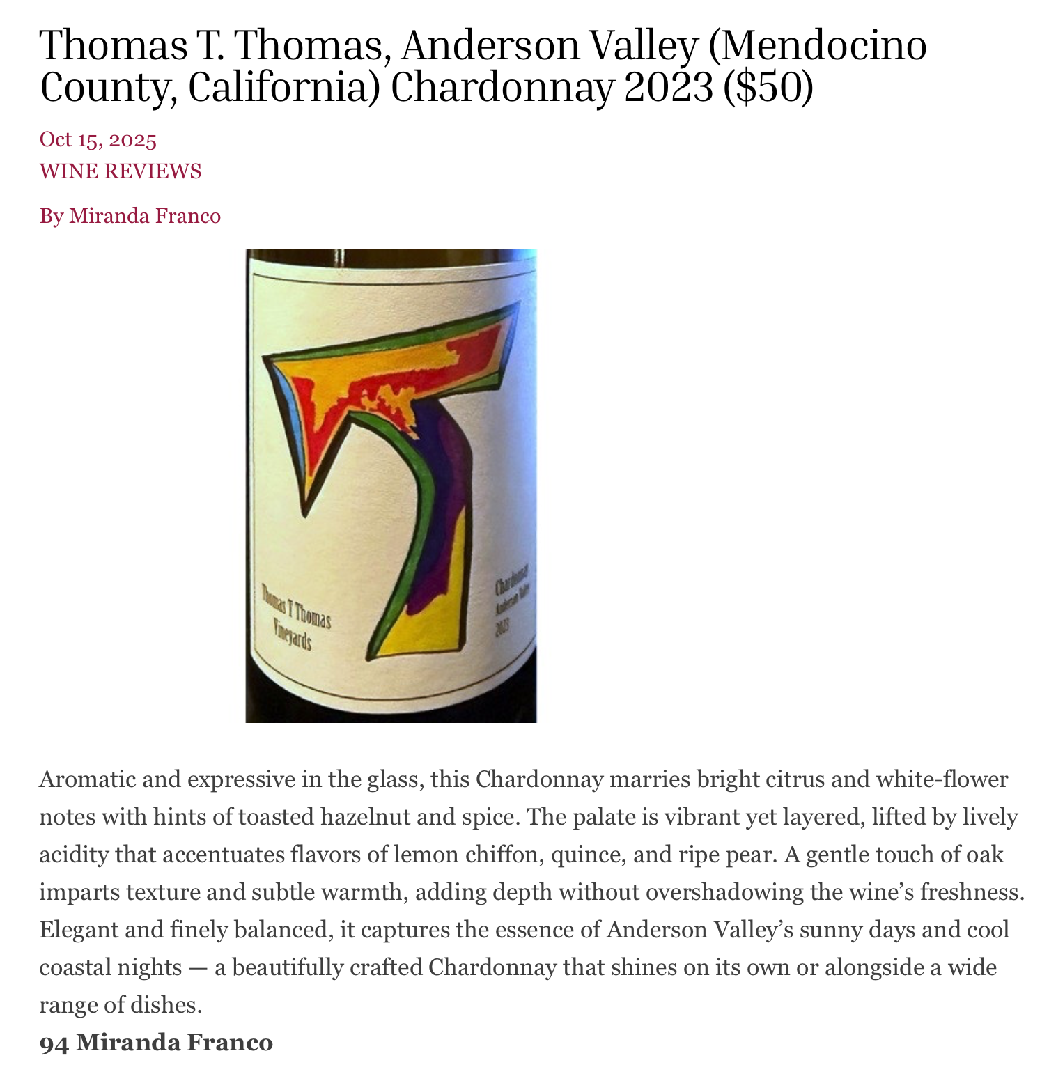 2023 Chardonnay, Wine Review Online